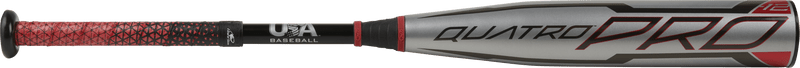 This Quatro Pro USA baseball bat was meticulously engineered using an internal carbon-fiber multi-disc system that delivers performance like no other bat at this level. Its unique sound is sure to turn heads, especially as spectators watch the ball explode off its massive barrel. The sound you hear is the sound of technology at work; the, ‘Sound Of Performance.’ In addition, the stylish silver, black, and red design is sure to make people notice every time you walk up to the plate.