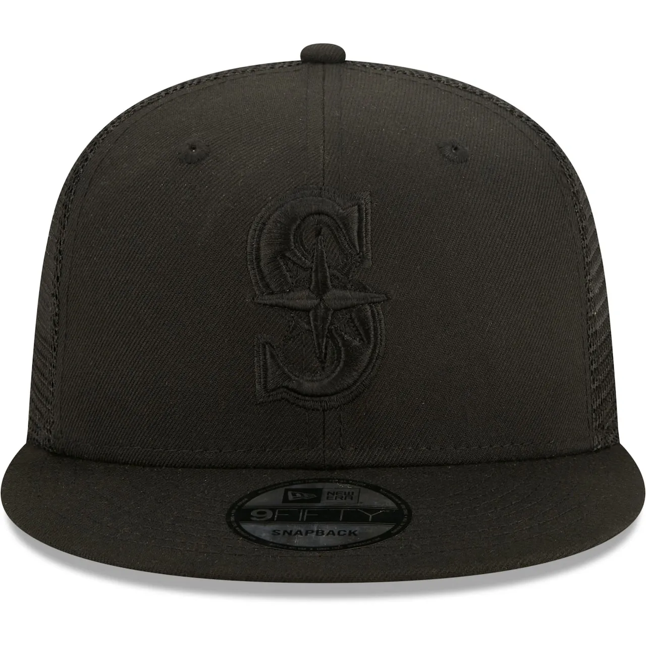 Flip the switch on your Seattle Mariners fandom to dark mode with this Blackout Trucker 9FIFTY hat from New Era. Its solid design features the Seattle Mariners logo in raised embroidery and breathable mesh panels. Additionally, the snapback closure easily adjusts to fit you just right.
